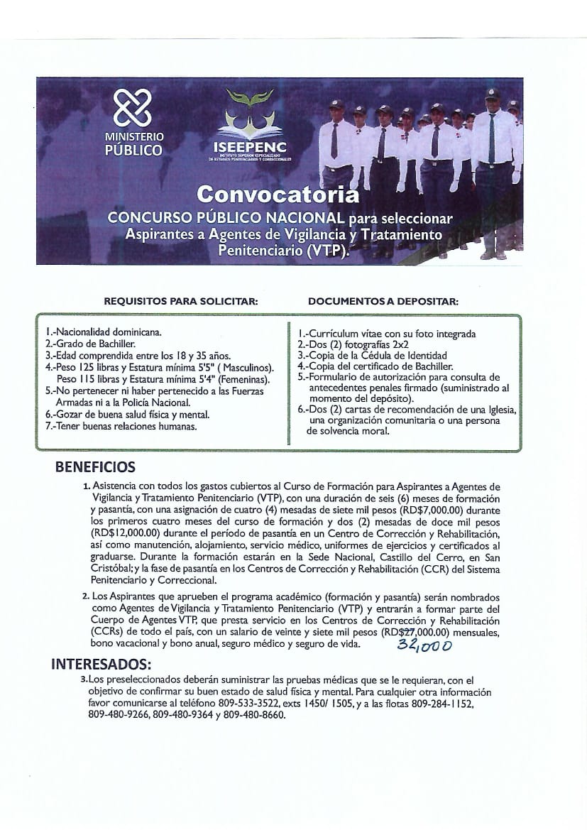Ministerio Publico Aspirante a Agentes de vigilancia y tratamiento penitenciario (VTP) Oportunidad de Empleo CCR las Parras.