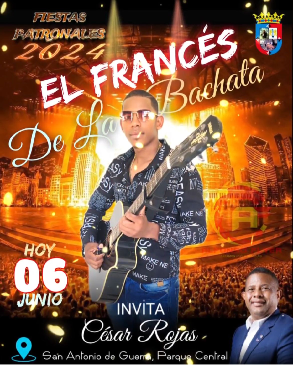 El Alcalde Cesar Rojas te invita este jueves 6 de junio del año en curso A disfrutar en tarima del Frances de la Bachata .